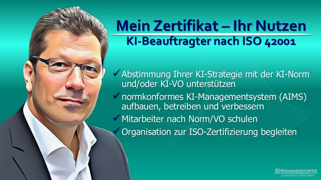 - Kompetenz sowohl in KI-VO als auch ISO 42001